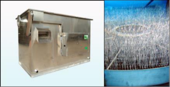 自动气浮装置:隔油区内由溶气率非常高的的气浮发生装置组成,目的使隔油区内污水中的油脂附在极微小的气泡上而迅速聚结上浮,最终浮上水面,达到有效地油水分离。